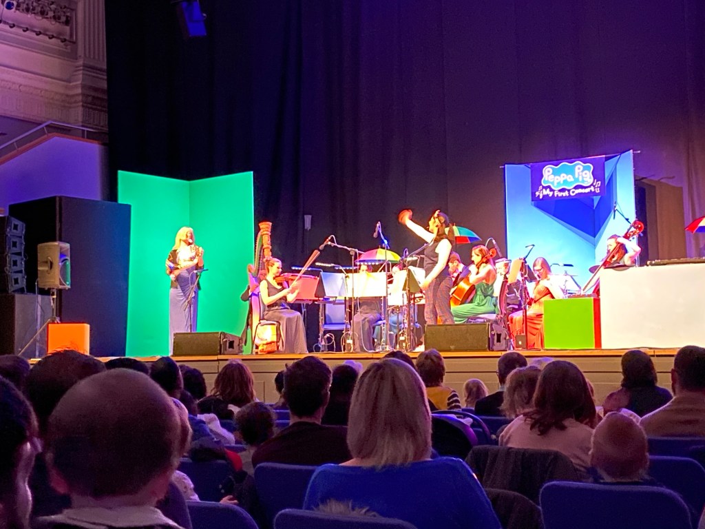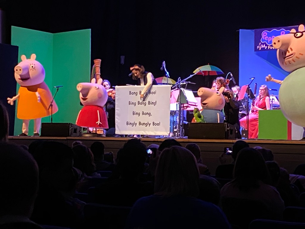 The concert was lovely. There was a good mix of songs from the show and other orchestral music. It did feel like a proper introduction to music and to attending a concert for very young children. We started saying hello to Peppa, George, Mummy and Daddy Pig, which my two loved-such an exciting start to the concert, especially for my 2 year old. Then we were introduced to the musicians and the instruments they were playing.