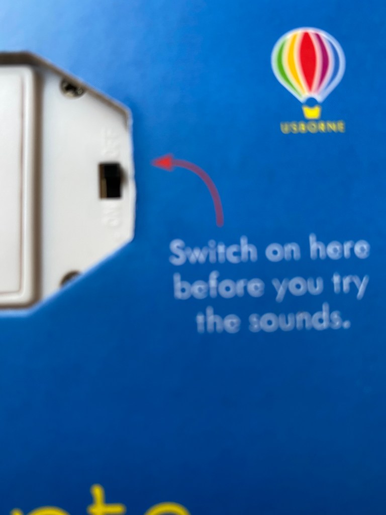 As with all sound books, there is an on/off switch so if your children will not leave it alone and it starts to drive you mad you can turn the sound off, and also to make sure the battery doesn’t go flat when you are not using it.