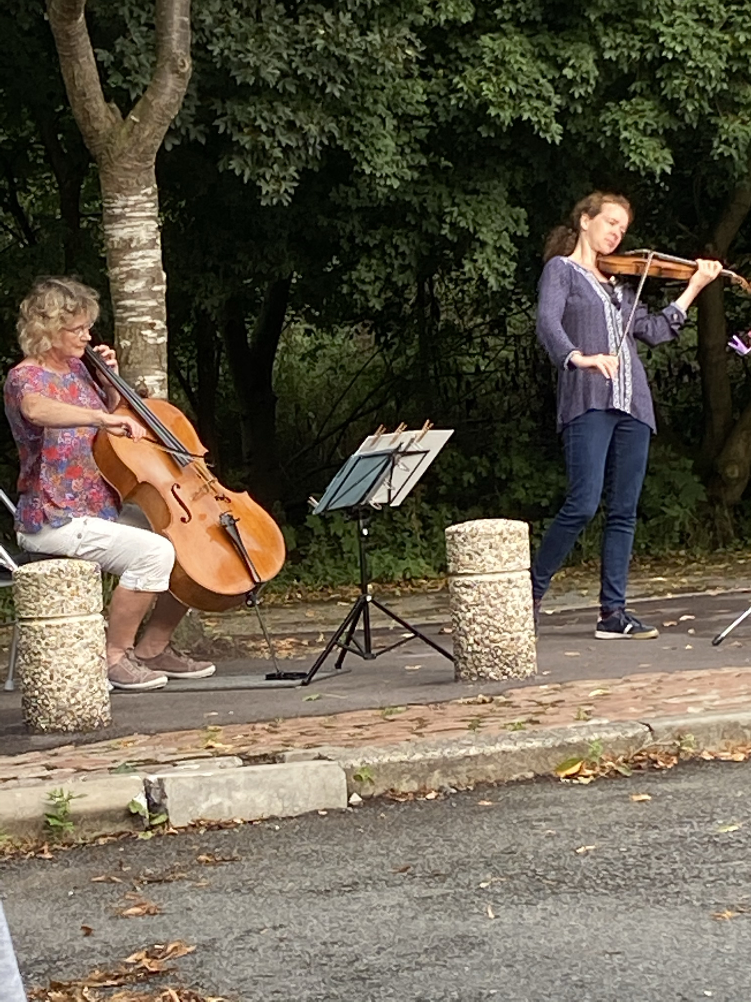 We had a bigger treat last Thursday when two professional musicians, cellist Jackie Tyler and violin player Julia Aberg played a concert on our road – even better for us was that it was pretty much right outside our door!