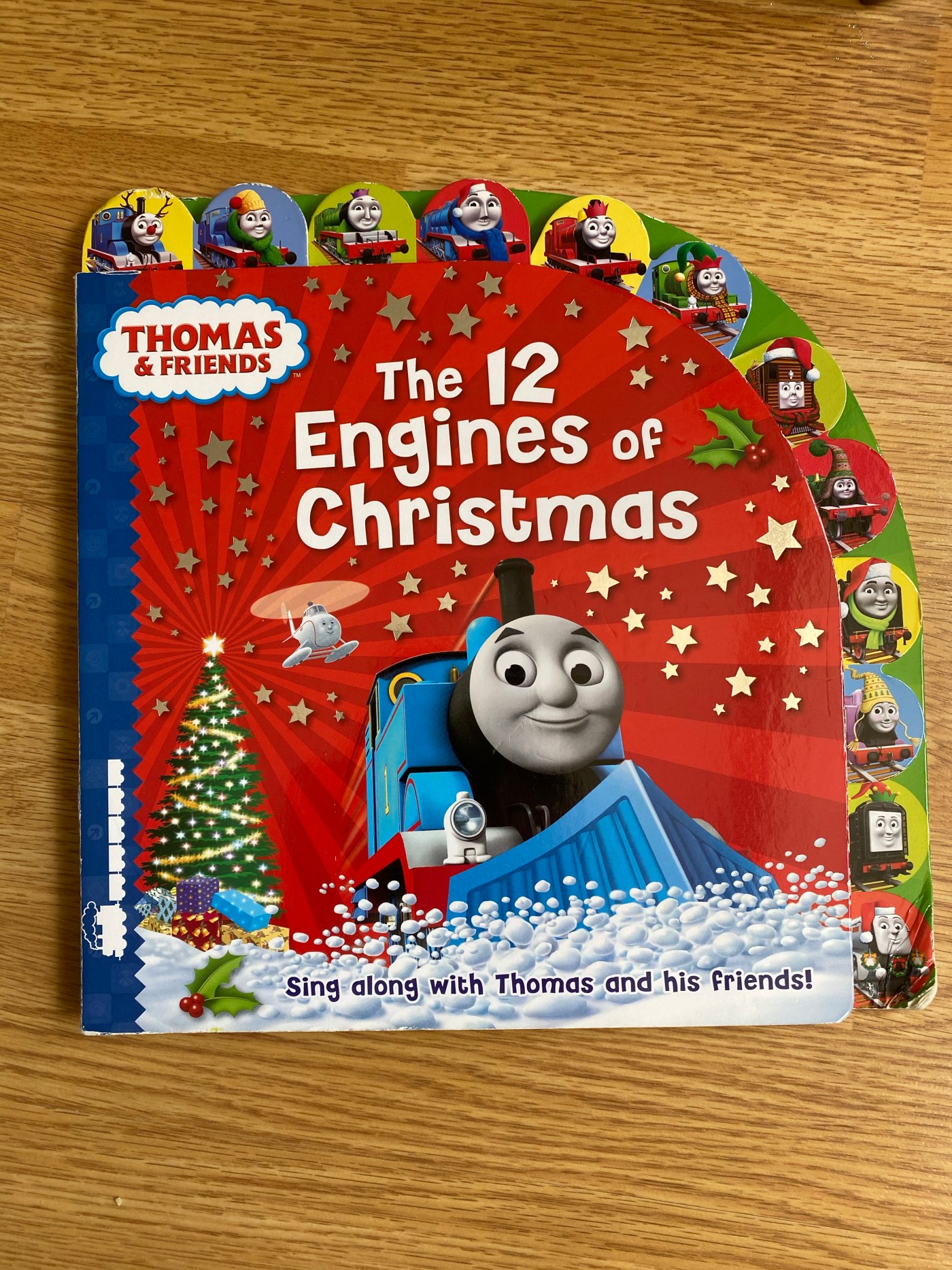 The 12 Engines of Christmas, as you can see from the front cover, is a re-writing of the song for fans of Thomas the Tank Engine. We went through quite the train obsession phase when my son was very young and everything was Thomas the Tank Engine based. We have had this book for about 4 years now, and as mentioned above, both children love to have it as their bedtime book no matter the time of the year. It is quite dog-eared now. It is a board book, so stands up well to small people trying to chew it and their general heavy handedness. There are large tabs along the top edge of the book to make it easier for small children to turn the pages by themselves, and each engine has their own page. It starts with the first day of Christmas “what did Thomas see?” (as Engine number 1 on the Island of Sodor, of course Thomas must go first) and works through 11 more engines and what Christmassy items they saw.