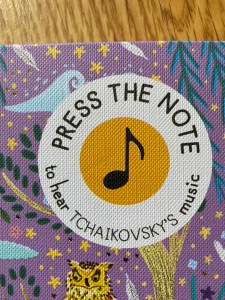 This is a sound book, so throughout the book there are musical notation symbols which, when pressed, play excerpts from Tchaikovsky’s Swan Lake.