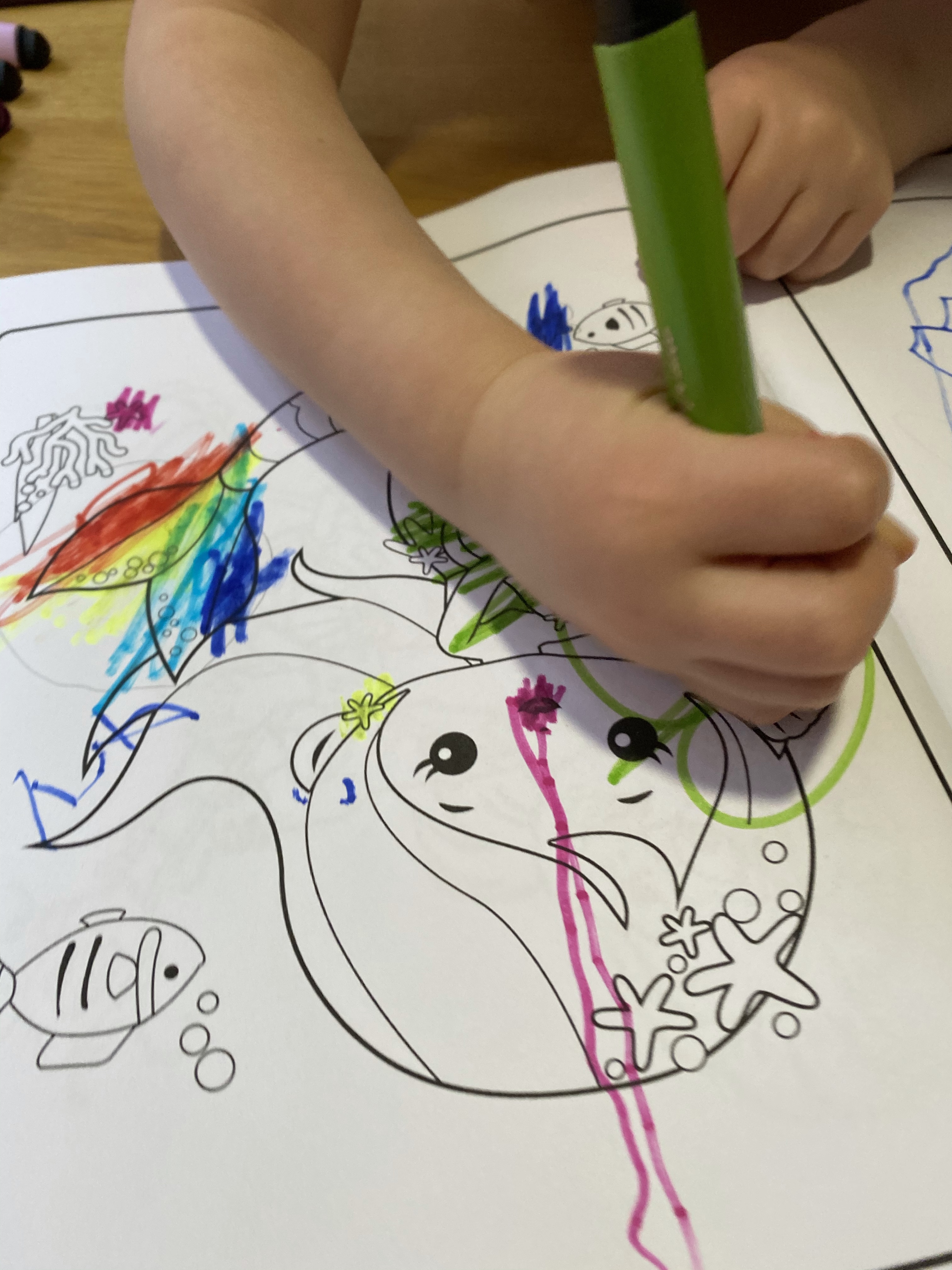 As predicted my daughter went straight for the mermaid pictures, and left what she termed as the “boring” pictures for me to colour in under her direction – she does like to watch me colour pictures in for her!