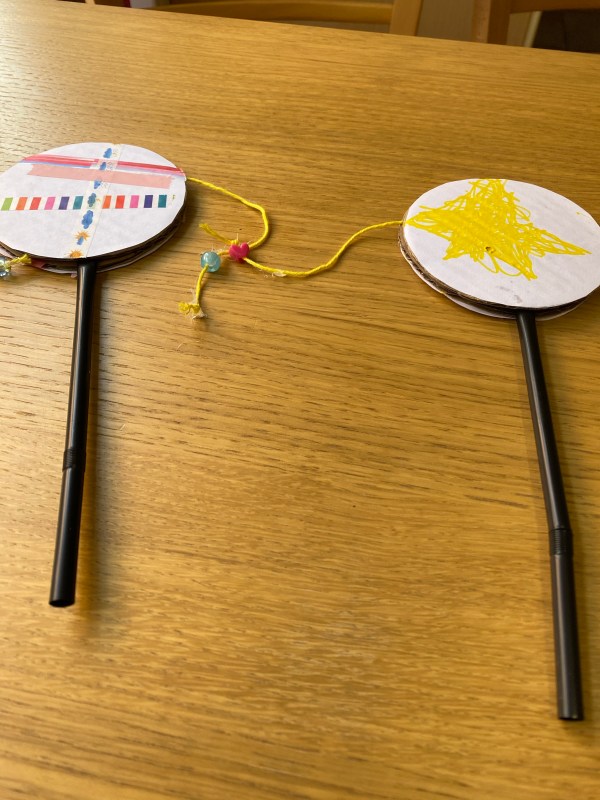 Making a hand drum out of items you have at home. Keeping the children busy with screen free activities.